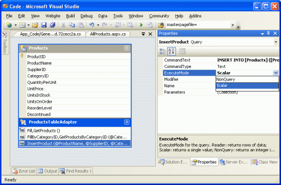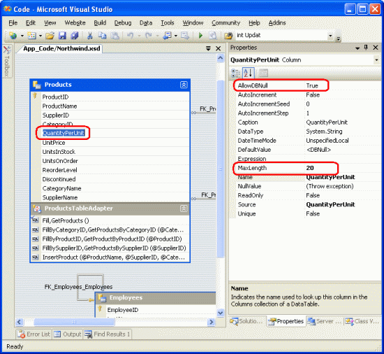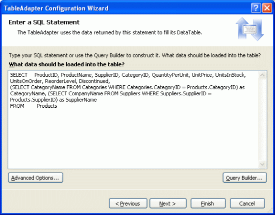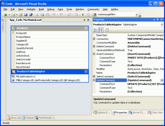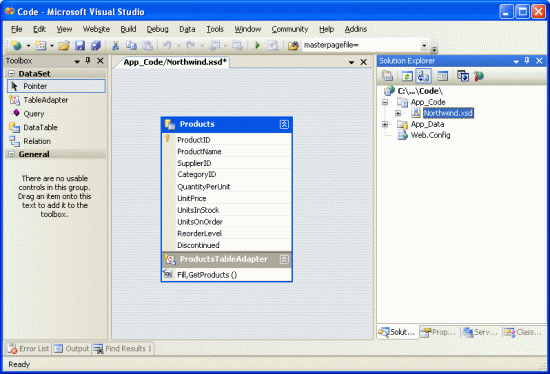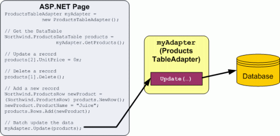 <li>Using strongly typed TableAdapters and DataTables</li>