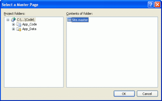 Figure 6. Choose the Master Page this ASP.NET Page Should Use